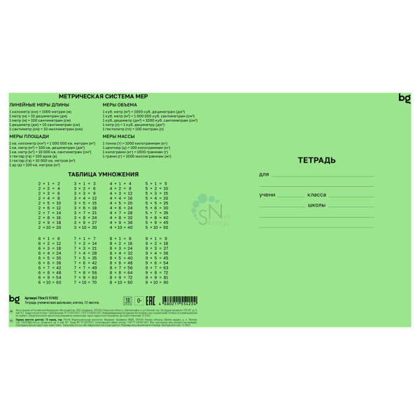 Тетрадь 12л клетка BG Т5ск12 57422 зеленая